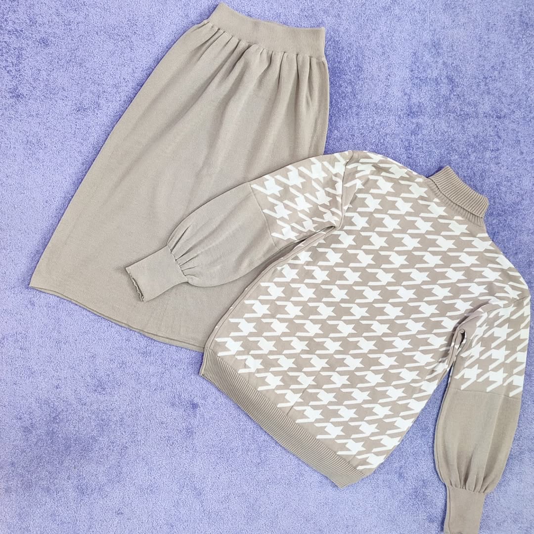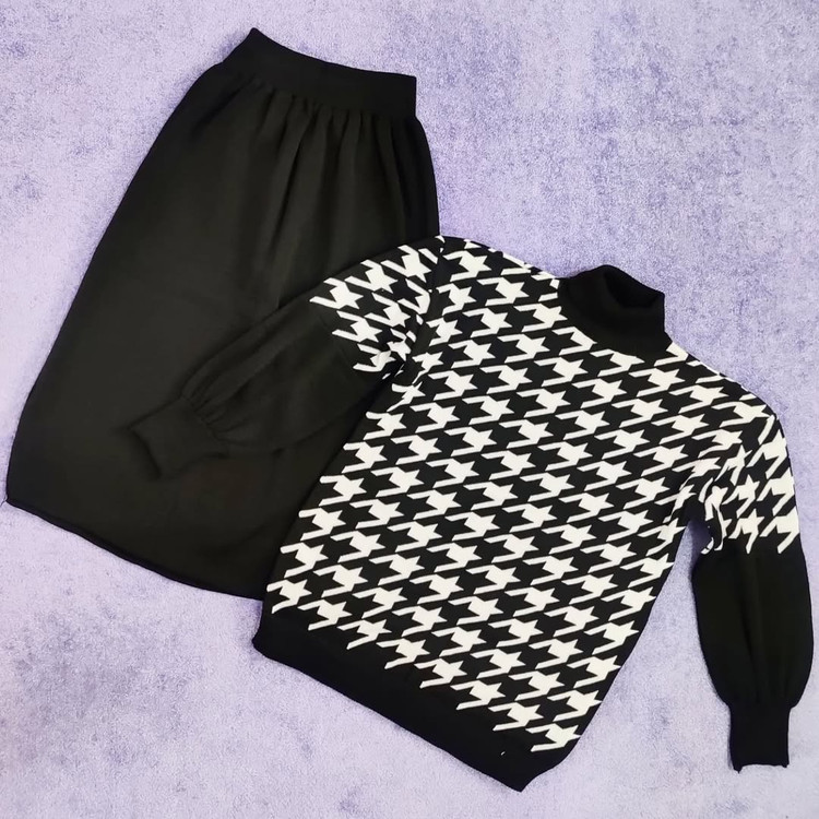 مدل:ست بلوز ودامن پیچازی جنس:بافت گرم بالا رنگبندی:موشی،عسلی،مشکی سایزبندی:فری38_40_42_44_46_48_50 قددامن:80سانتی متر قد بلوز:72سانتی متر کناردامن چاک میخوره مدل یقه اسکی